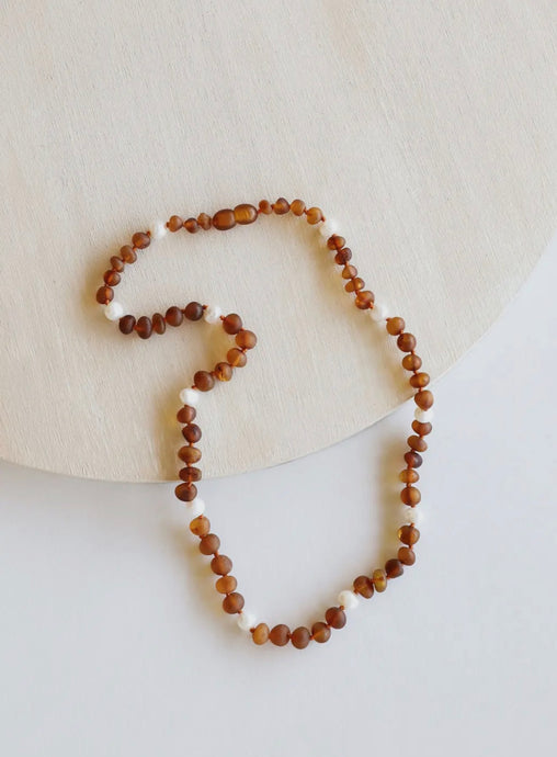 Raw Cognac Baltic Amber + Pearl Halo Baby Necklace