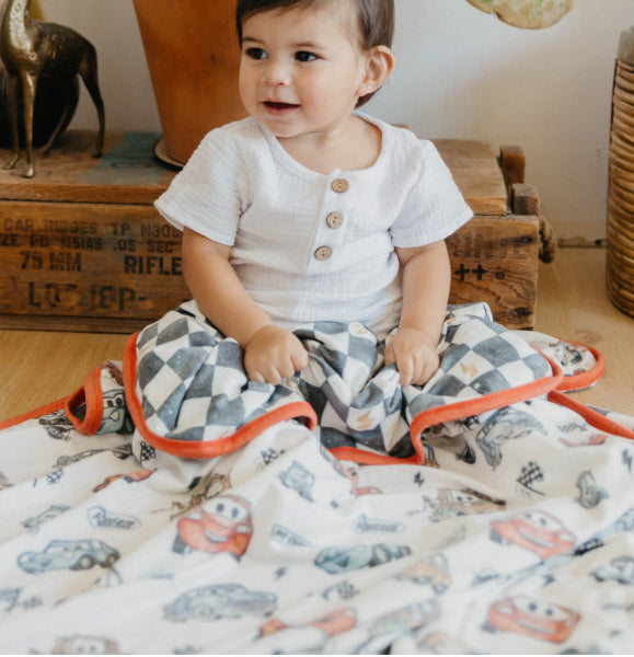 Triple the coziness, double the style. Created with baby's comfort in mind, this go-to quilt offers three layers of premium knit with superior softness and stretch. Generously sized at 46x46 inches, it's designed to grow with baby from infancy to toddlerhood and beyond. With a trendy print on one side and a basic look on the other, our reversible quilt delivers twice the style at one great price. A cozy and clever buy!