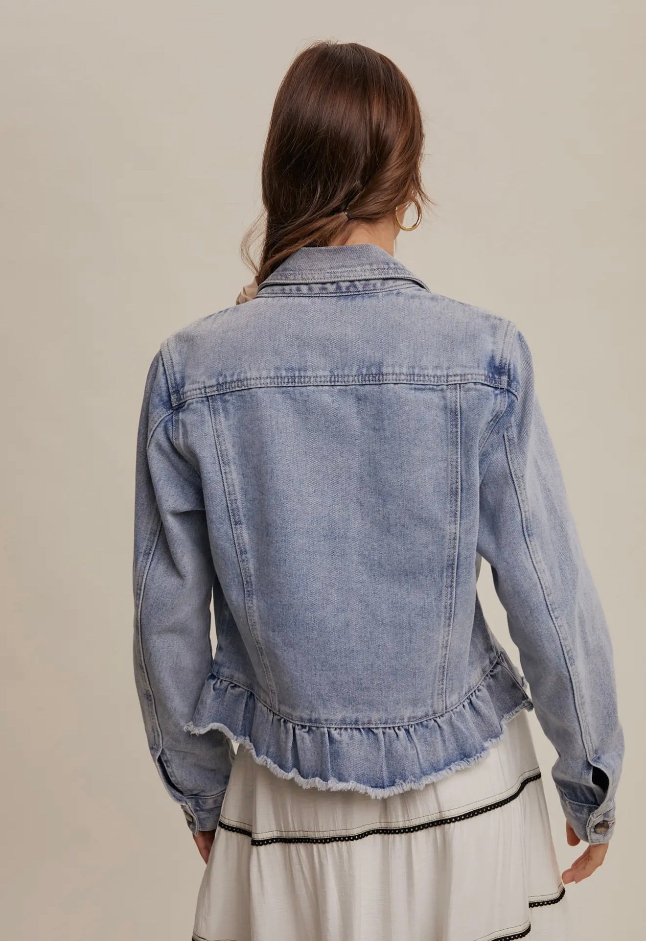 -Feminine ruffled hem with raw-edge detailing